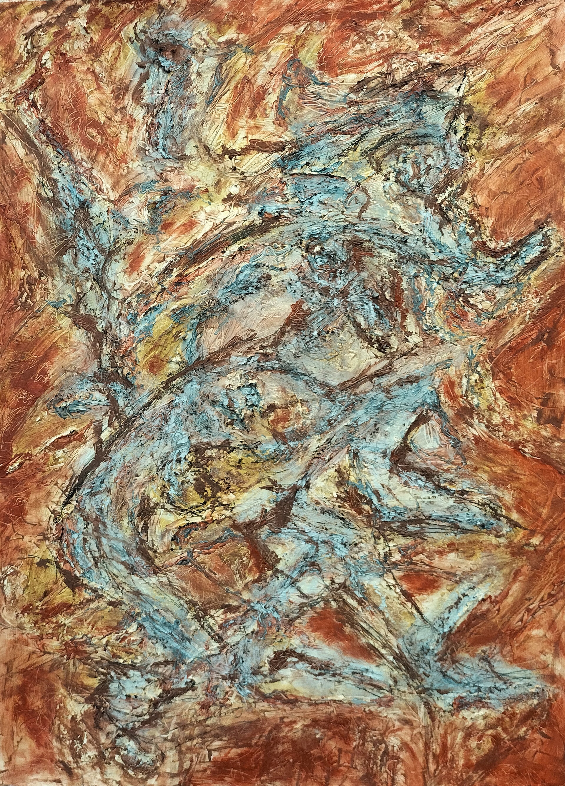 Mikayeli ararwana (mixed media on paper 59 x 84 cm)